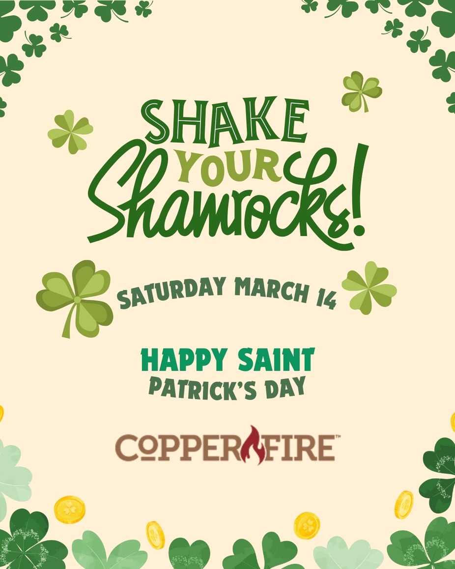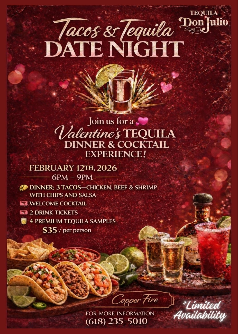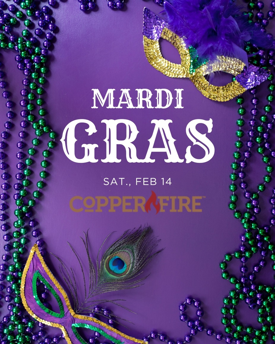 Valentine's Week at Copper Fire, not just Valentine's Day! Feb. 11-15 (except Mardi Gras on Feb. 14)